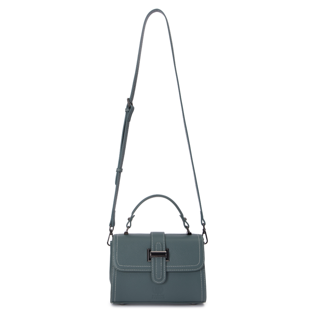 - Architectural Hardware: Signature silver-tone metal bar closure with a central leather tab for a secure, modern focal point.